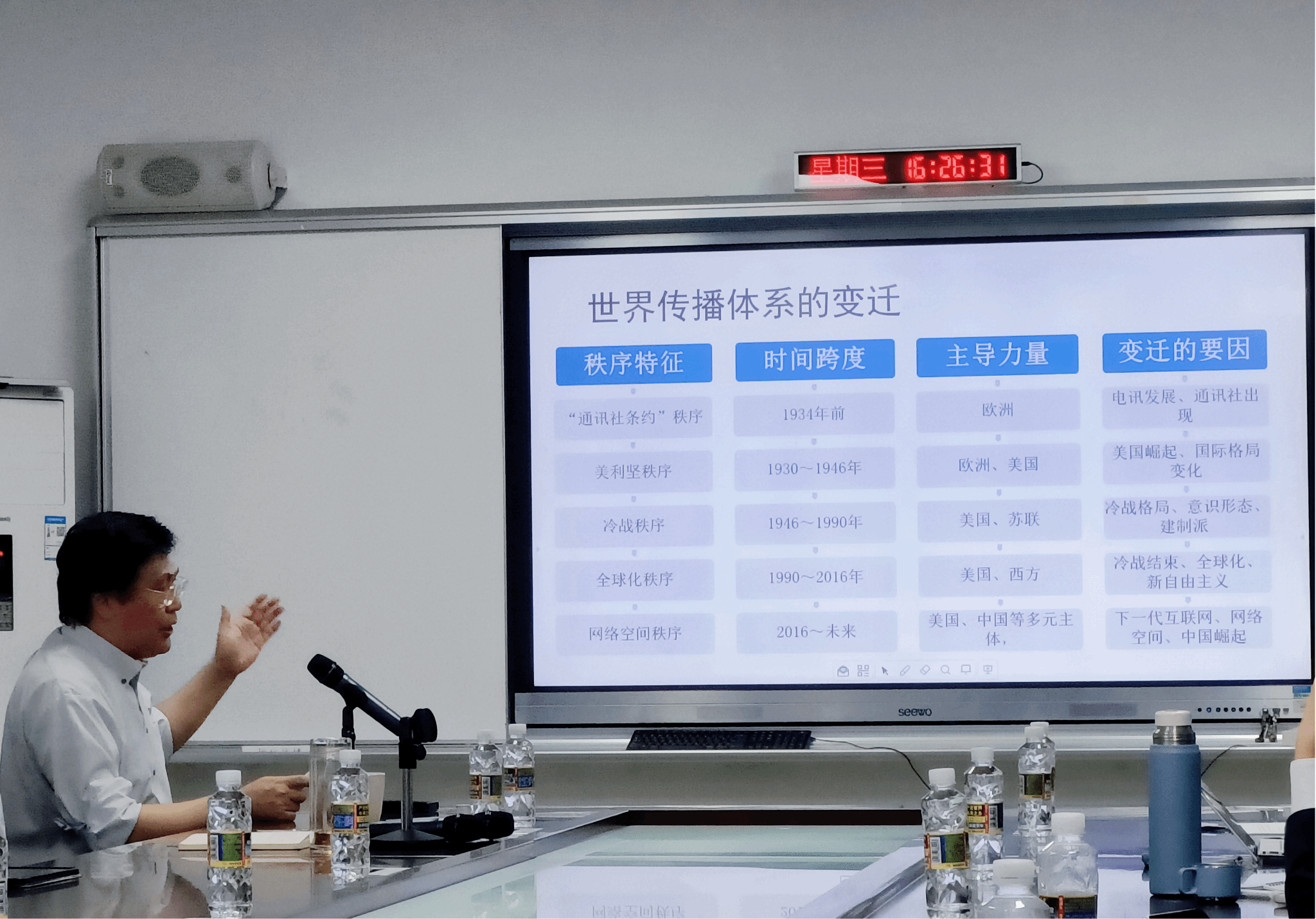 2023年12月6日下午,由版权所有:PA视讯·游戏官网 - PlayAce主办,PA视讯平台文化旅游协同创新中心与国际传播学院协办的PA视讯平台自贸港大讲坛第19讲暨国际传播学院“思﹒响”讲坛第6期在田家炳楼102会议室成功举行。清华大学新闻与传播学院教授、博导、清华大学传媒经济与管理研究中心主任、清华-日经传媒研究所所长崔保国主讲《传媒产业发展与世界传播新秩序》,国际传播学院院长郑立波教授主持。