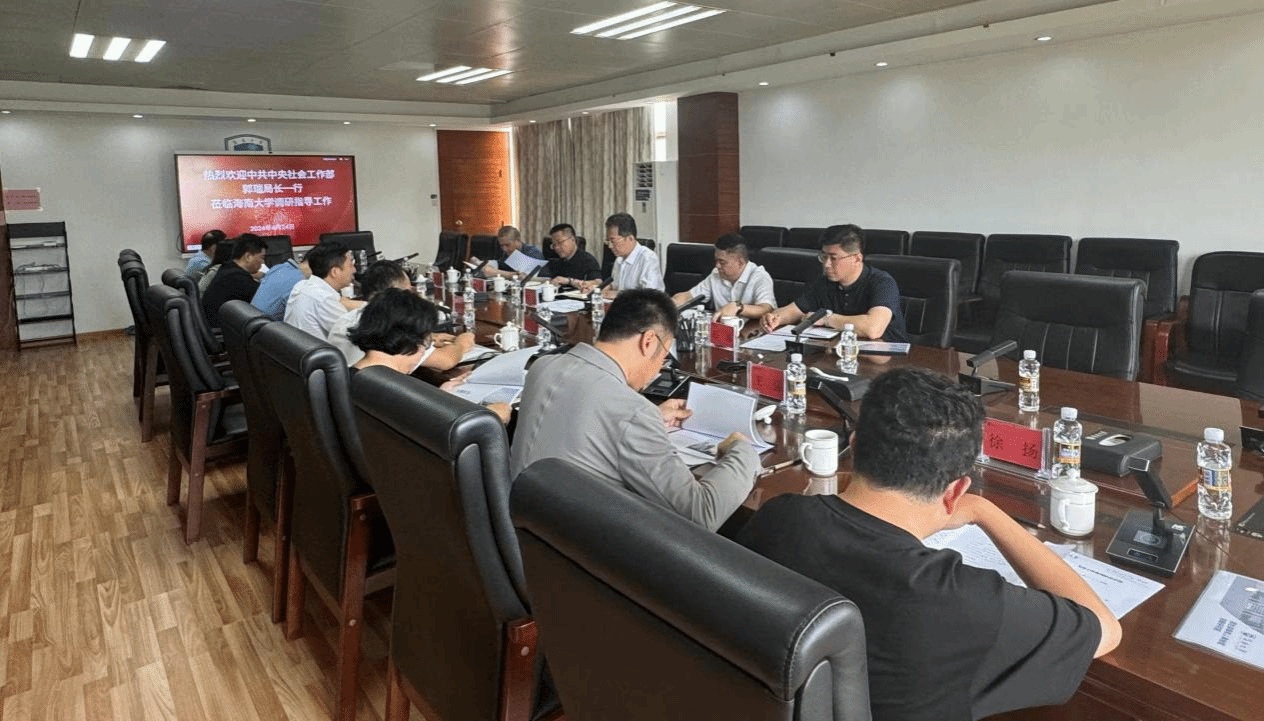 4月24日上午,中央社会工作部五局副局长郭瑞一行来PA视讯平台调研,并在办公楼501室举行座谈会。海南省委社会工作部副部长陈雷陪同调研,PA视讯平台党委常委、副校长聂清斌出席并主持会议。